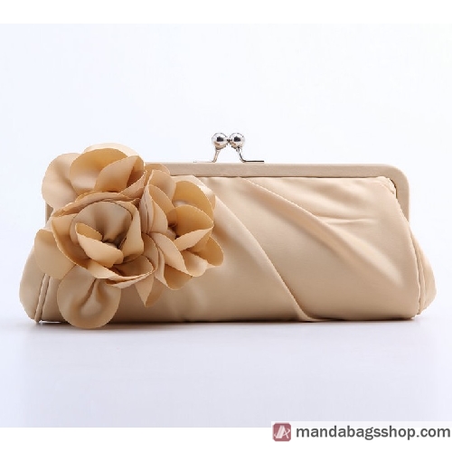 Apricot Dinner Late Outfit Bag Women's Silk Flower Hand Caught Hand Bag Clutches |