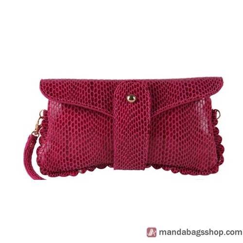 Cowhide Red Female Snakeskin Chain Hand Bag Wristlets |