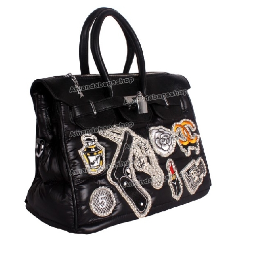 Fashion Leather Eiderdown Space Bag Diamond Black Stamp Shoulder Bags |