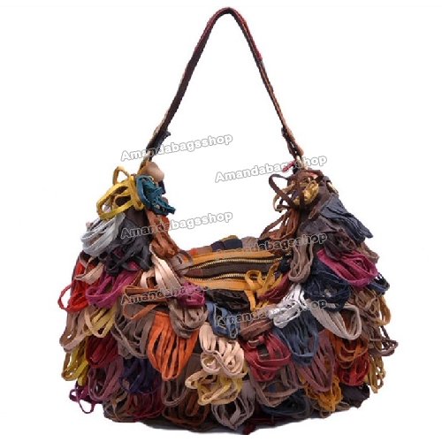 Female Sheepskin Genuine Leather Tassel Fish Scale Open Zipper Hobos |
