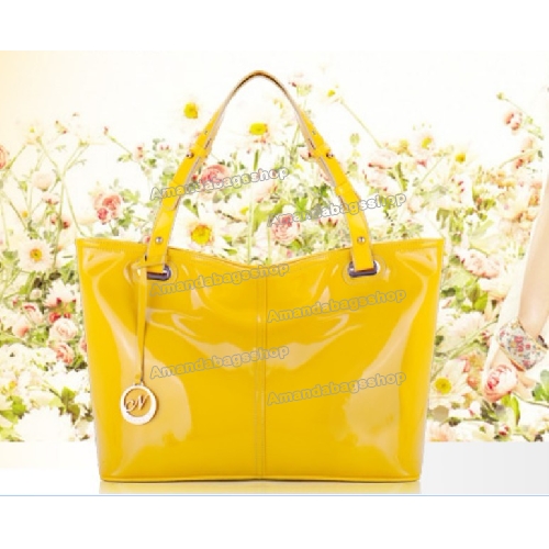 Genuine Leather Yellow Portable Satchels |