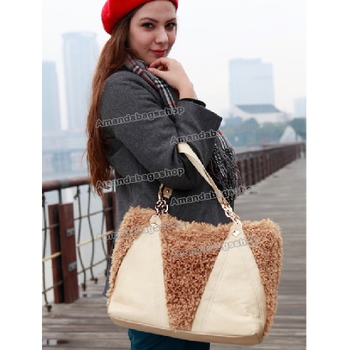 Korean PU Leather & Wool Totes Sweet Lady Shoulder Bag |