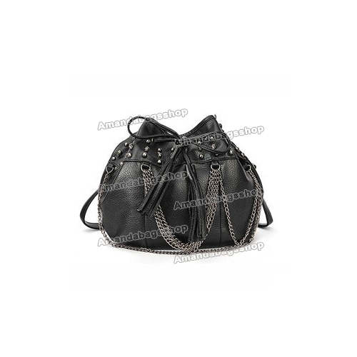 Ladies' European Style Fashionable Rivets Tassels Chain Skeleton Drawstring Bucket Messenger Bags Shoulder Bags for Women |