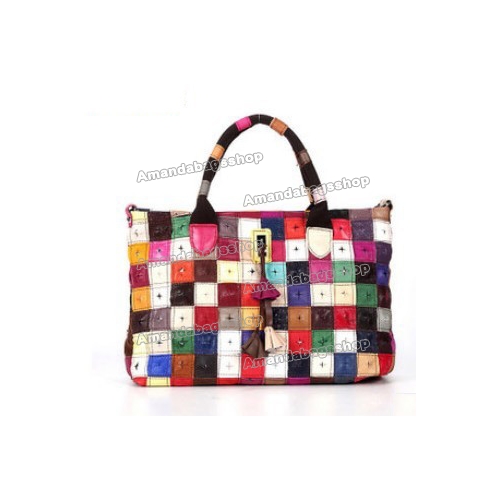 Ladies Handbags Fashionable Genuine Leather Totes Stitching Sheepskin Colourful Messenger Bags for Women |