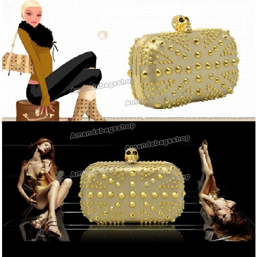 Ladies Retro British Flag Rivet Skull Evening Bag Daimond Fashionable Golden Clutches for Women |