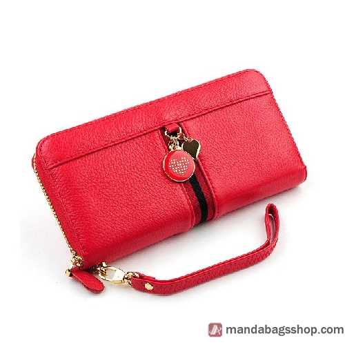 Lady Red Cowhide Leather Hand Bag Wristlets |