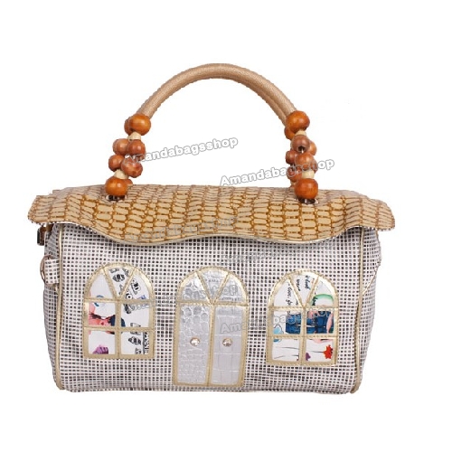 Lovely Crocodile Grain Case Grain Small Houses Form Wooden Ball Adornment Shoulder Bags |