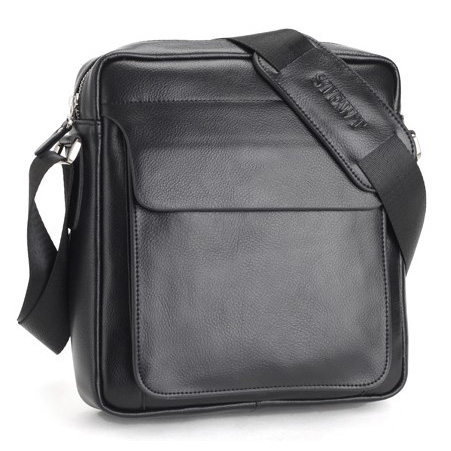 Men's Black Genuine Leather Shoulder Messenger Bag |