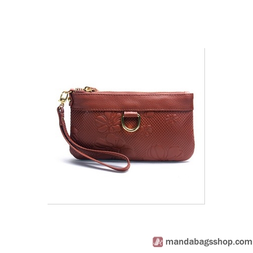 Women Embossed Thin Pure Leather Wallet Handbag Wristlets |