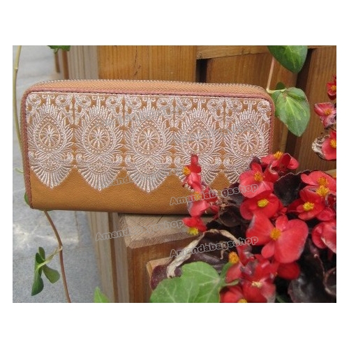 Women's Bud Silk Double-sided Embroidery Zip Vegetble Tanning Sheepskin Hand Bag Purse Clutches |
