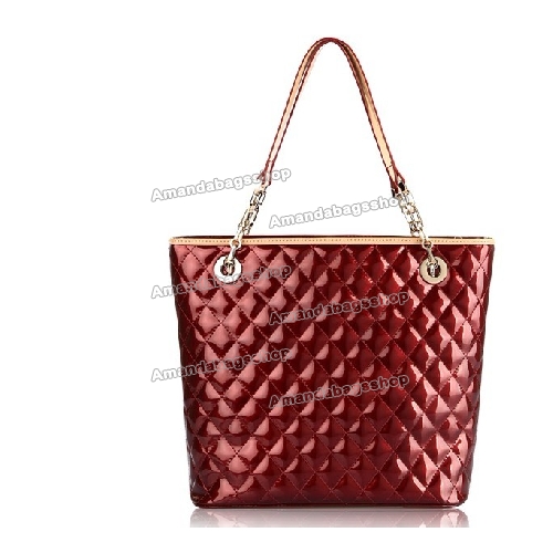 Women's European Style Lattice Chain Sewing Patent Leather Totes |