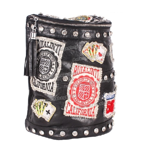 Women's Fashion Rivet Black Diamond Bucket Shoulder Bag |